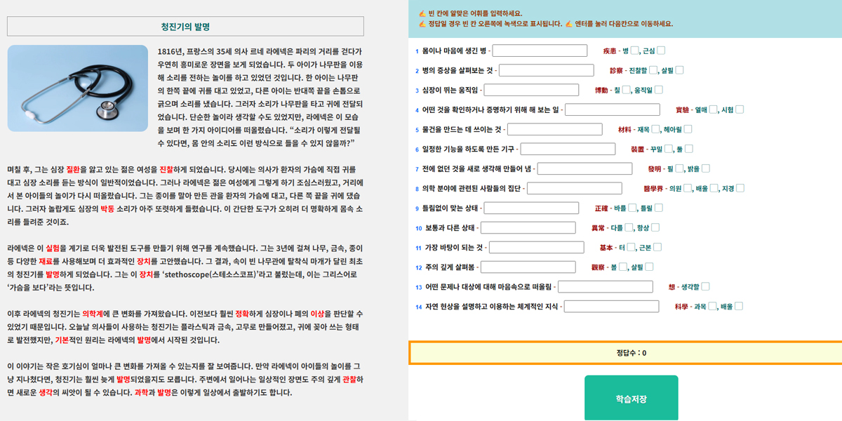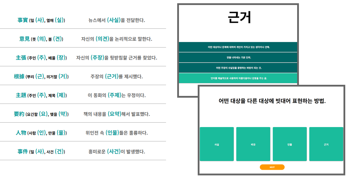 인문, 사회, 과학 등 다양한 문장속에서 개념어휘를 익혀보세요.